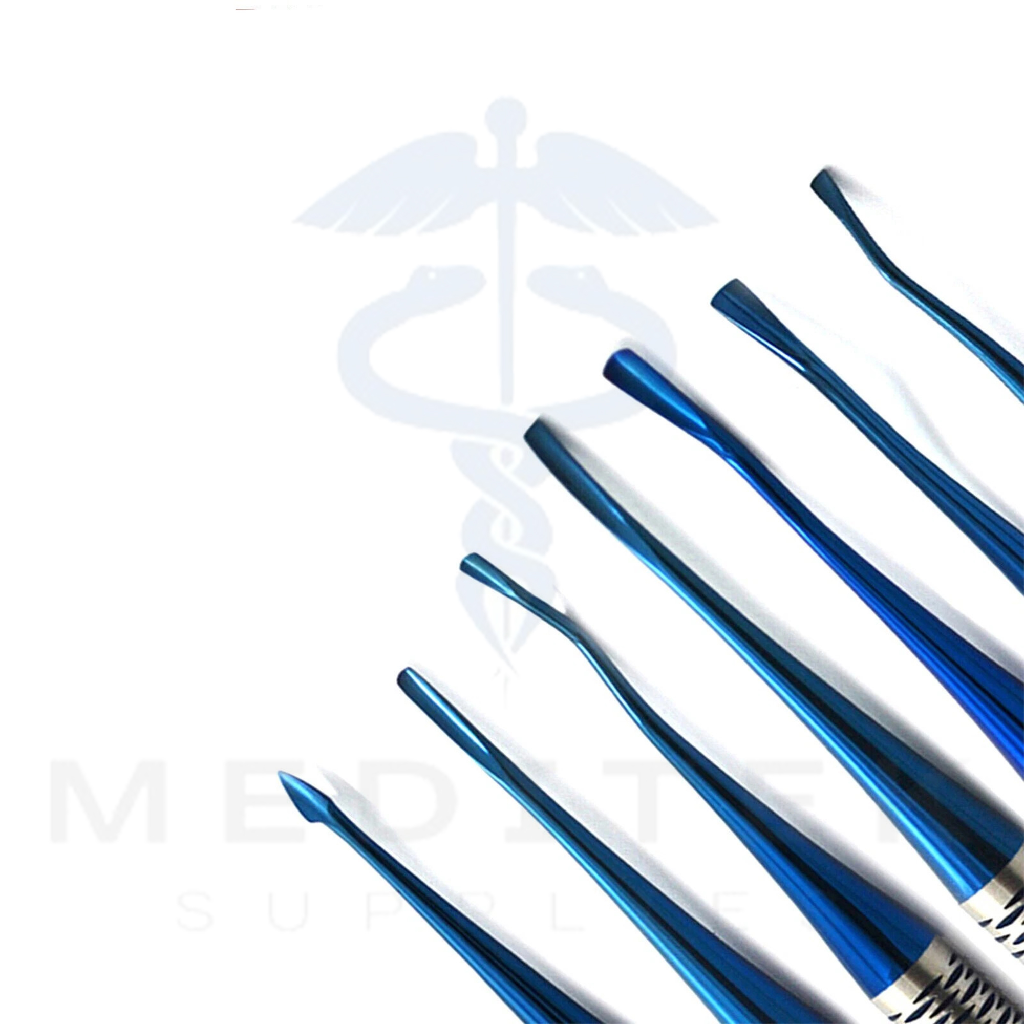 The Dental Extraction Instruments Kit by Meditek is a professional-grade set designed for precise tooth luxation and extraction procedures. This comprehensive kit includes 2 Root Luxating Elevators, 7 PDL Luxating Elevators, and a 7-piece stainless steel cassette, providing all essential tools for effective dental extraction and root manipulation.